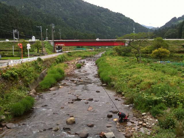 とりあえず、新潟方面に向かって車を走らせていたら、秋田を越えて山形まで来てしまった。かねてから興味のあった五十川。道沿いに大きな看板で、「鮎と鮭の川」とのっているのが気に入っていた。そこで、寄り道。ようやく釣り券を売っているお店を見つけ購入してノートに名前を書くと、一番客だった。地元の人しか釣らないのかなぁ〜と思いながら、まずは釣りやすそうな下流域へ。しかし、まったくアタリもない。ハミあとはあるにしても、鮎の姿が乏しい。再度上流へ移動し、放流しているという場所の橋から見ると、まだこっちの方が鮎の姿が濃いような・・・。でも、新潟河川の方がよっぽど濃いような・・・。まあ、日釣り券も購入したので他河川への移動もくやしいので、ここに竿をおろしてみた。初めさっぱりだったが、案外元気な囮を入れると掛かり出す。なによりも、ここの水のきれいなこと。今までの中で、1・2番。透明な水の中から釣れてくる鮎もべっぴん。数は伸びなかったが、やはりきれいな川は最高!来年もぜひここに竿を出してみたい。