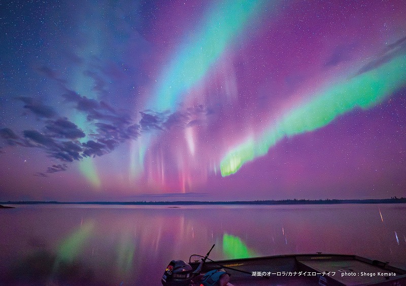 ![]() 1月 湖面のオーロラ/カナダイエローナイフ空に現れたオーロラは緑の光を揺らめかせながら、静かな湖にも姿を映しだし、光と水が織りなすその光景は、まるで大地と空が一体となったかのよう。自然が作り出す静かな鏡は時を忘れるほど美しいものであった。 |